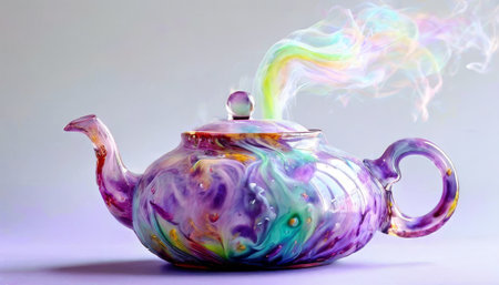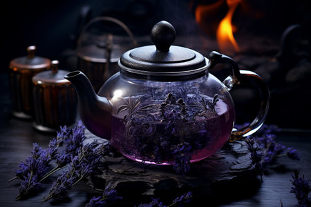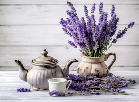 AI Generated. Pastel Teapot with Lavender Blooms Vintage Charm and Calming Atmosphere