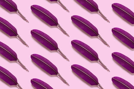 Vibrant purple feathers texture background detailed digital art of exquisite big bird feathers