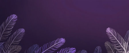 Purple feathers texture background with detailed digital art and prominent large bird feathers