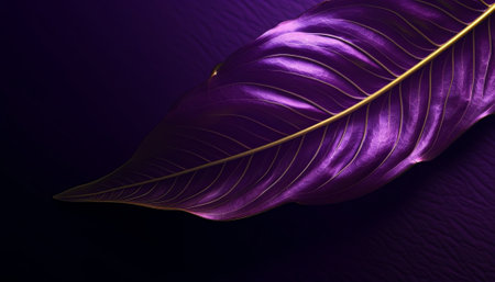 A stunning purple feather elegantly placed on a soft purple background, showcasing the intricate details and graceful design of natural elements. Perfect for creative projects.