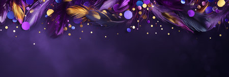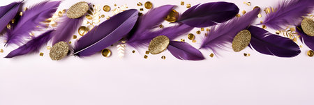 AI Generated. Feathers on a purple background, suitable for design with copy space, Mardi Gras celebration