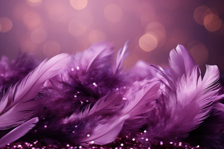 Feathers on a purple background, suitable for design with copy space, Mardi Gras celebration. With Generative AI technology.