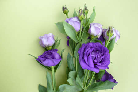 Purple roses on a green background. Unusual flowers Eustoma for a gift.