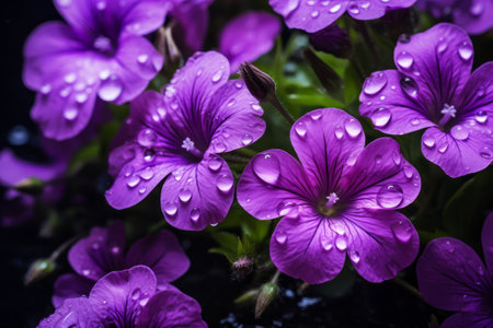 Deep Purple Geranium Blooms with Water Droplets on Petals