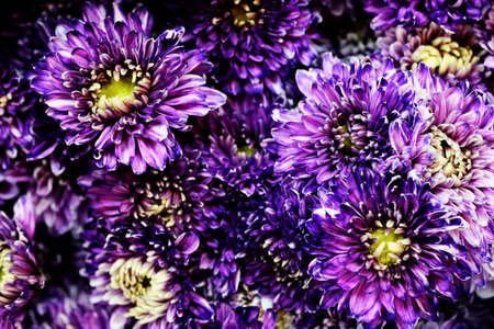 purple chrysanthemums flowers in the garden with blur background, shallow depth of field, selective focus