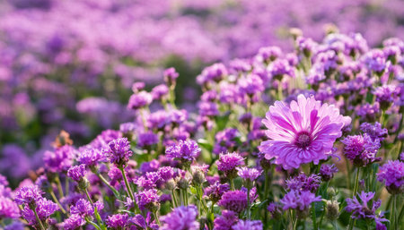 Enchanting Floral Harmony: Captivating Purple and White Bed of Flowers --ar 3:2