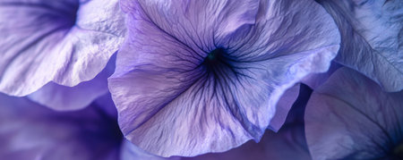A macro close-up of soft, purple petunia petals, with a velvety texture and subtle lighting, creating a calm, soothing atmosphere.