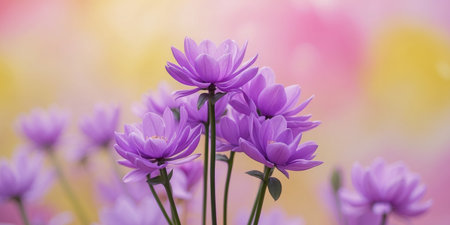 Generative AI : Beautiful flowers macro abstract art background with a soft focus Pink and purple flowers aster in nature on lilac background