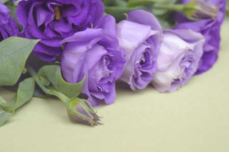 Purple roses on a green background. Unusual flowers Eustoma for a gift.