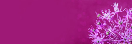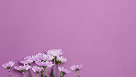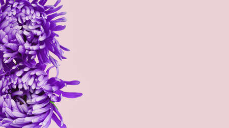 Violet aster flowers border banner chrysanthemum type on pink