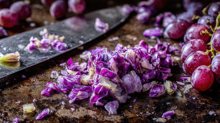 Cut red cabbage on cutting board. Culinary still life.