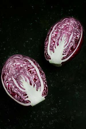 cut in half red cabbage on a dark background