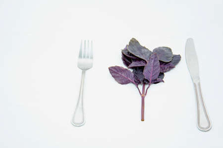 Fresh blue basil on light background