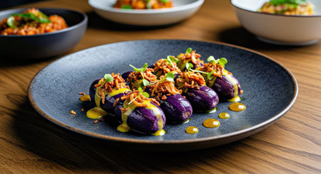 Purple Eggplant with Garlic Sauce - Thai food style.