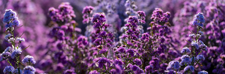 Vibrant purple lavender flowers blossom in a fragrant field in Provence, France, under the summer sun