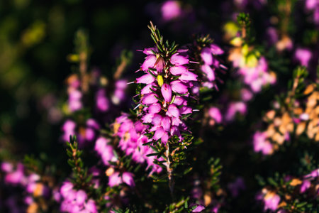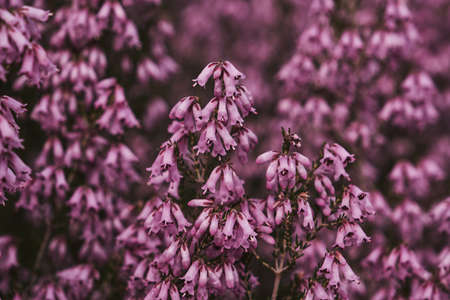 Close-up of erica heather flowers. Selective focus and shallow depth of field.