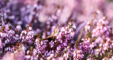 Beautiful heather flowers on the meadow close-up.