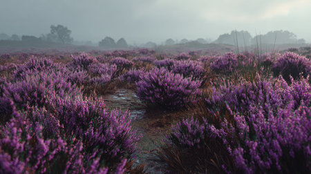 Purple heather field in natural surroundings