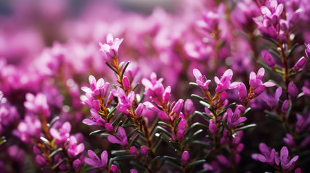 Flowering Heather Plant, Erica Flowers, Gardener Heather, Beautiful Blooming Calluna Flower, Generative AI Illustration