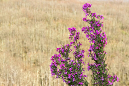 Close up of beautiful blooming purple heather flower. Selective focus.