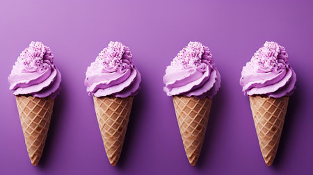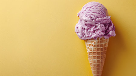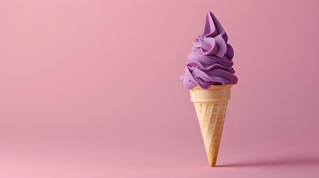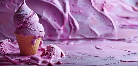 Purple ice cream nestled in a waffle cup, set against a backdrop of lavender hues, banner