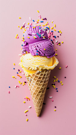Ice cream colourful summer treat, sweet dessert in summertime, holiday food idea
