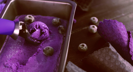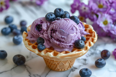 Cool delight: blueberry ice cream perfection, copy space.