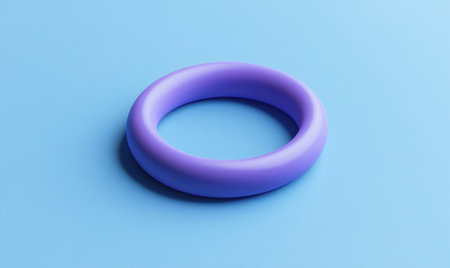 3D icon of an abstract purple ring on a blue background, in a minimalistic style with simple shapes, made of matte plastic material, in an isometric view with studio lighting, a Cinema 4D render. --ar 5:3 --v 6.1 Job ID: 26a67182-b09c-409b-a8c1-62795022c33c