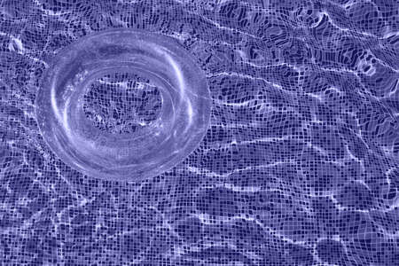 Empty rubber transparent ring floating on blue water surface in swimming pool. Bright summer background. Vacation concept. Color of the year 2022 inspired