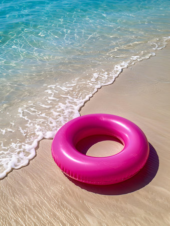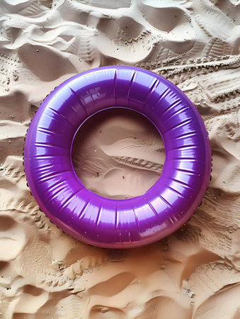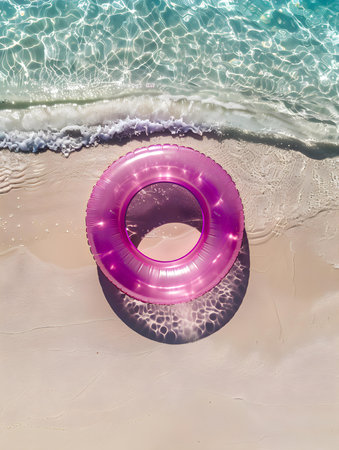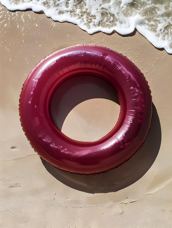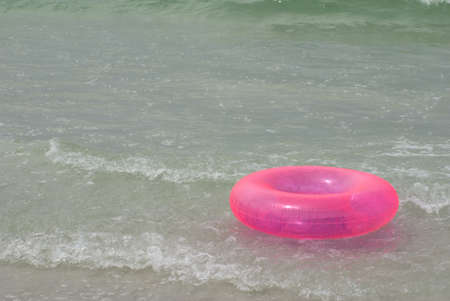 Close Up of a fuchsia inflatable swimming ring on the beach