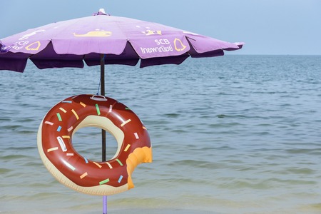 Prachuab Khirikhan, Thailand - October, 13, 2017 : Donut rubber ring buoy for play on the Huahin beach of Thailand.