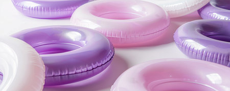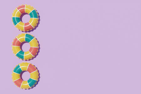 set of colorful summer inflatable ring on purple background, Summer time concept, 3d rendering.