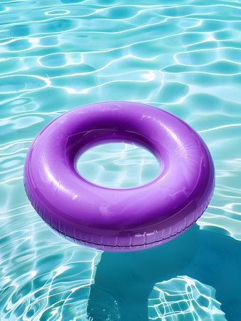 Close up of a purple inflatable ring floating on pool water. Colorful Summer Wallpapers