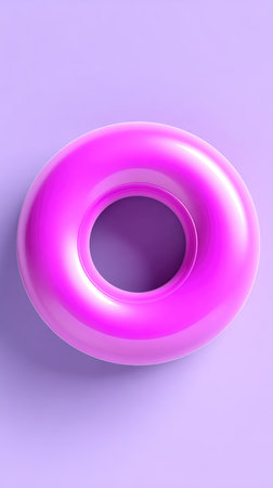 A close-up shot of a bright pink donut against a light purple backdrop, creating a visually appealing contrast.