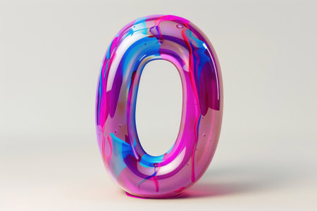 A blue and white number 0 is floating in the air. The number is made of clear plastic and has a unique design