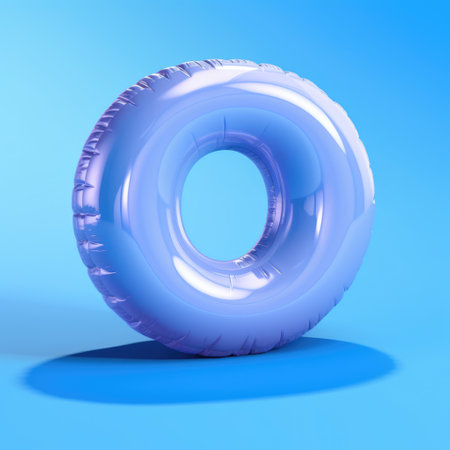 Blue inflatable ring on blue background. 3D rendering. Top view.