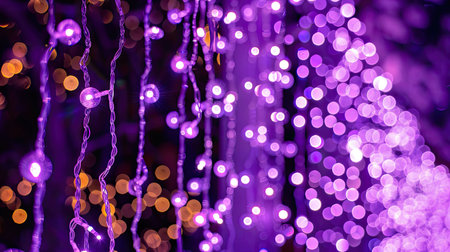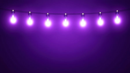 This vibrant image features a row of purple string lights glowing softly against a smooth backdrop, ideal for enhancing festive and celebratory moods.