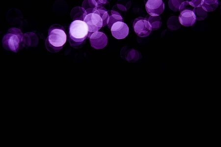 Abstract blurred background, purple defocused lights Bokeh on black background, glittering circle pattern