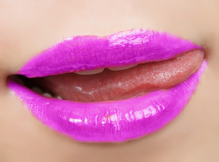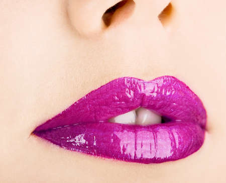 closeup of bright violet lips