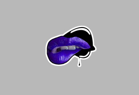 Beautiful purple lips close up. Isolated on white background.