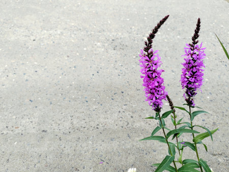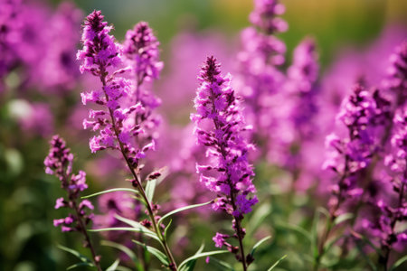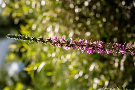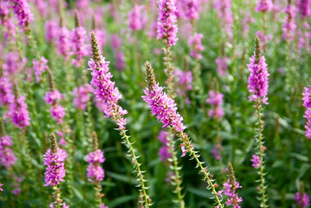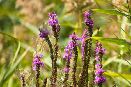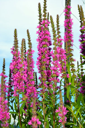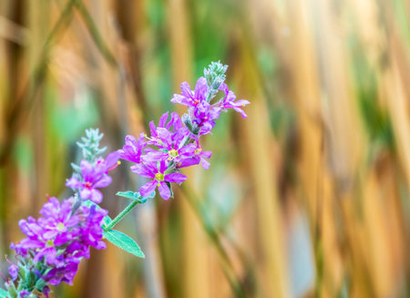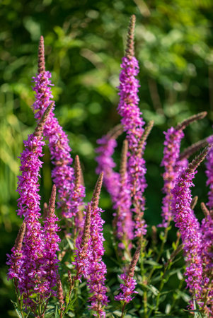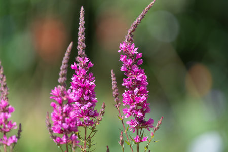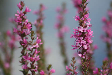 Lythrum salicaria, purple loosestrife purple flowers closeup selective focus