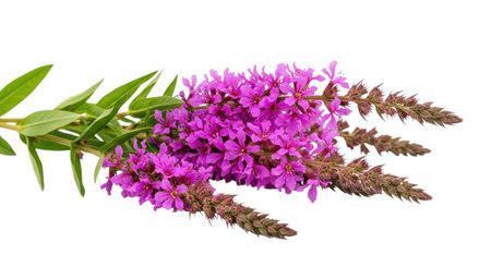 Botanical collection of medicinal plants, purple blossom of lythrum salicatia or loosestrife plants in summer