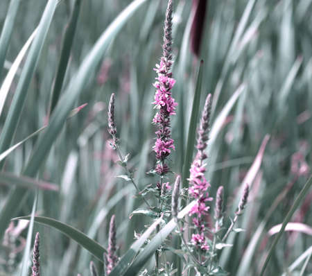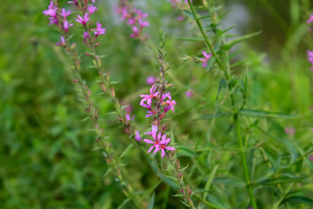 Lythrum anceps flower in the green field