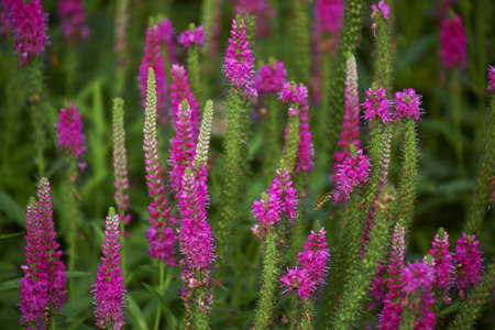 Beautiful veronica blooming in english cottage garden. Close up of purple veronica spicata flower. Floral wallpaper. Homestead lifestyle and wild natural garden