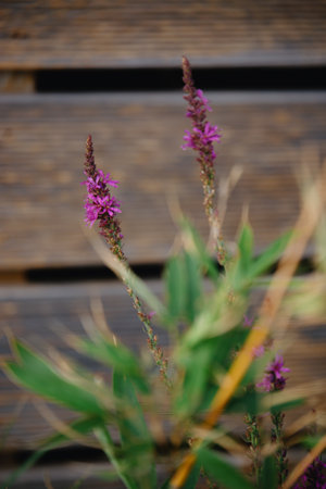 A selective focus shot of a Loosestrife flowering plant growing in the garde