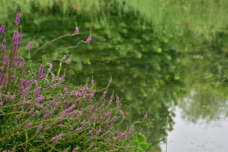 Common river loosestrife - Purple Loosestrife Lythrum Salicaria on the watersedge of Earlswood Lake