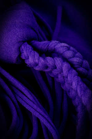 A curtain or clothes of the purple blue and sunshine.Close up