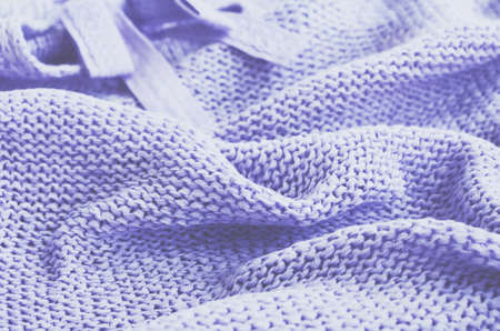 Knitted sweater with bow of lavender color, selective focus