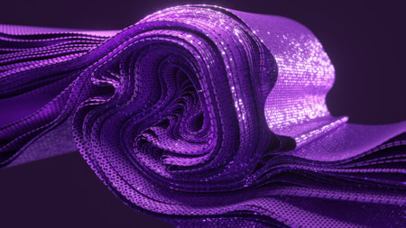 Closeup of rippled purple silk fabric lines. 3d render illustration