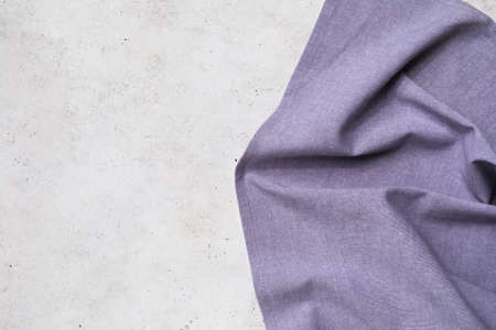 Textile purple napkin on the right side of the table with copy space, food background